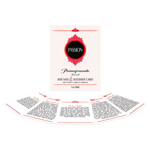 - Contains: 5 oz. Strawberry Bath Salts (for 5 baths) and 5 Waterproof Passion Activity Cards