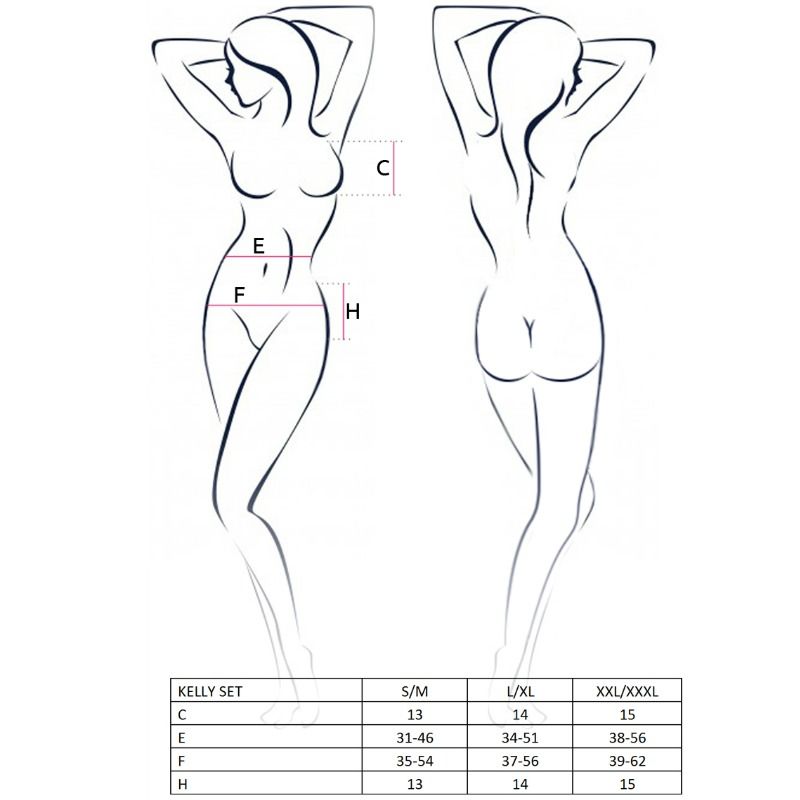 O conjunto da coleção Kelly é um fabuloso conjunto de lingerie com um design espetacularmente sexy com o qual você se tornará uma bomba de sedução, fabricado pela prestigiada marca de lingerie Passion